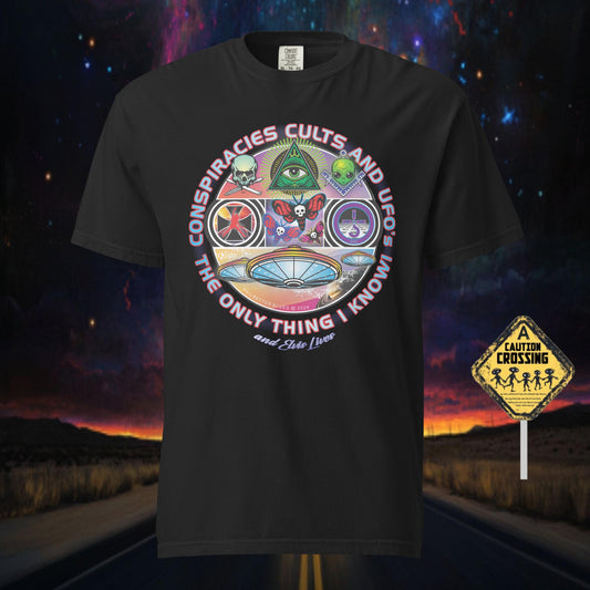 "Con's, Cult's & UFO's!", Unisex garment-dyed heavyweight t-shirt