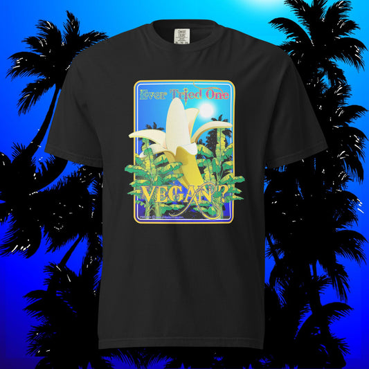 "Ever Tried One Vegan?", (His) Unisex garment-dyed heavyweight t-shirt