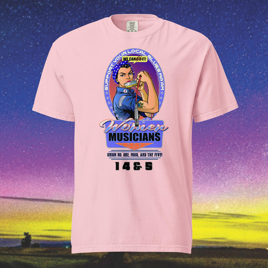 "Harps, Bullet Mic and Feathers!" Unisex garment-dyed heavyweight t-shirt